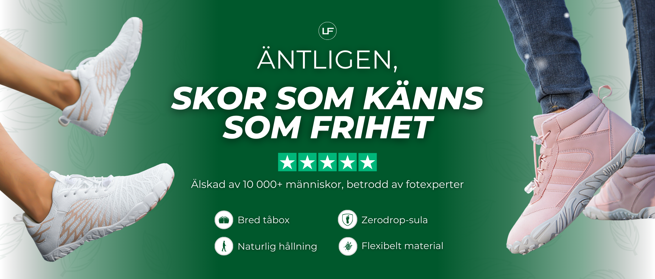 På Lagom Footwear anser vi att komfort och hälsa aldrig ska komma i andra hand efter stil. Traditionella skor är ofta för smala, för styva eller för upphöjda – vilket tvingar din kropp att ur form och förstärker smärta med tiden. Vår barfota-metod återställer din naturliga rörelse, så att du kan röra dig precis som din kropp är designad för.