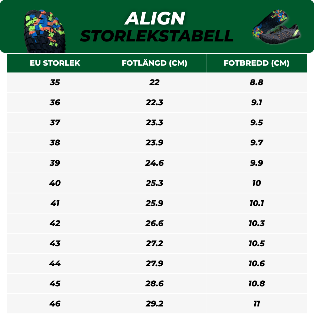 Tänk dig att äntligen kunna gå långa sträckor utan smärta , leka fritt med dina barn eller barnbarn och komma hem med energin att njuta av kvällen . Med Align känns vardagen lättare – från helgpromenader till hektiska arbetsdagar – eftersom dina fötter rör sig som naturen avsett.
