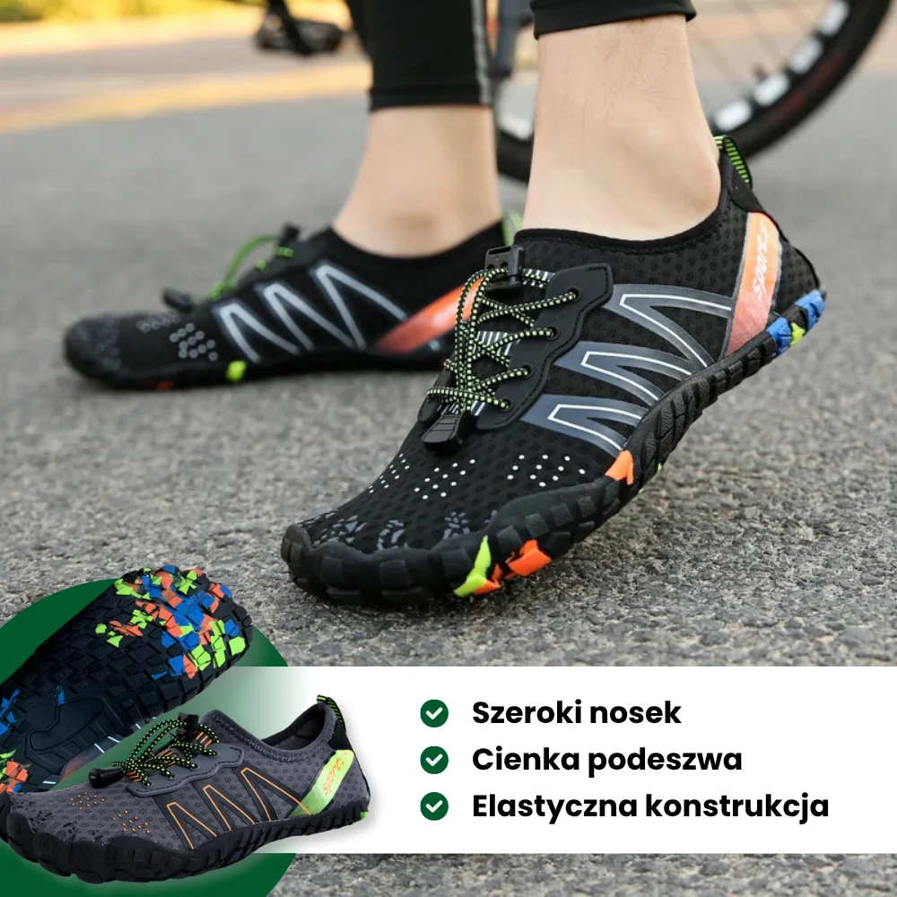Buty ortopedyczne często kompensują słabe stopy o ciężkiej konstrukcji. Nasze buty barefoot działają inaczej: trenują i wzmacniają stopy, jednocześnie zapewniając komfort i ochronę. Wiele osób postrzega je jako naturalną, lżejszą alternatywę.