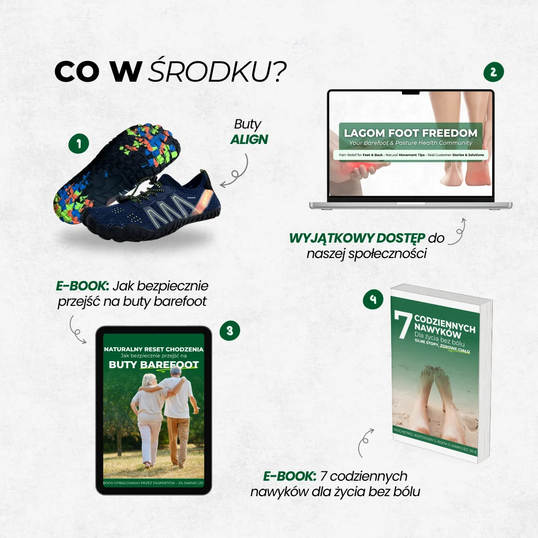 👉 To nie tylko para butów — to kompletne rozwiązanie zapewniające zdrowszy ruch i długotrwały komfort. Wszystko, czego potrzebujesz, aby zacząć chodzić naturalnie, żyć bez bólu i znów poczuć się pewnie — wszystko w jednym pakiecie.