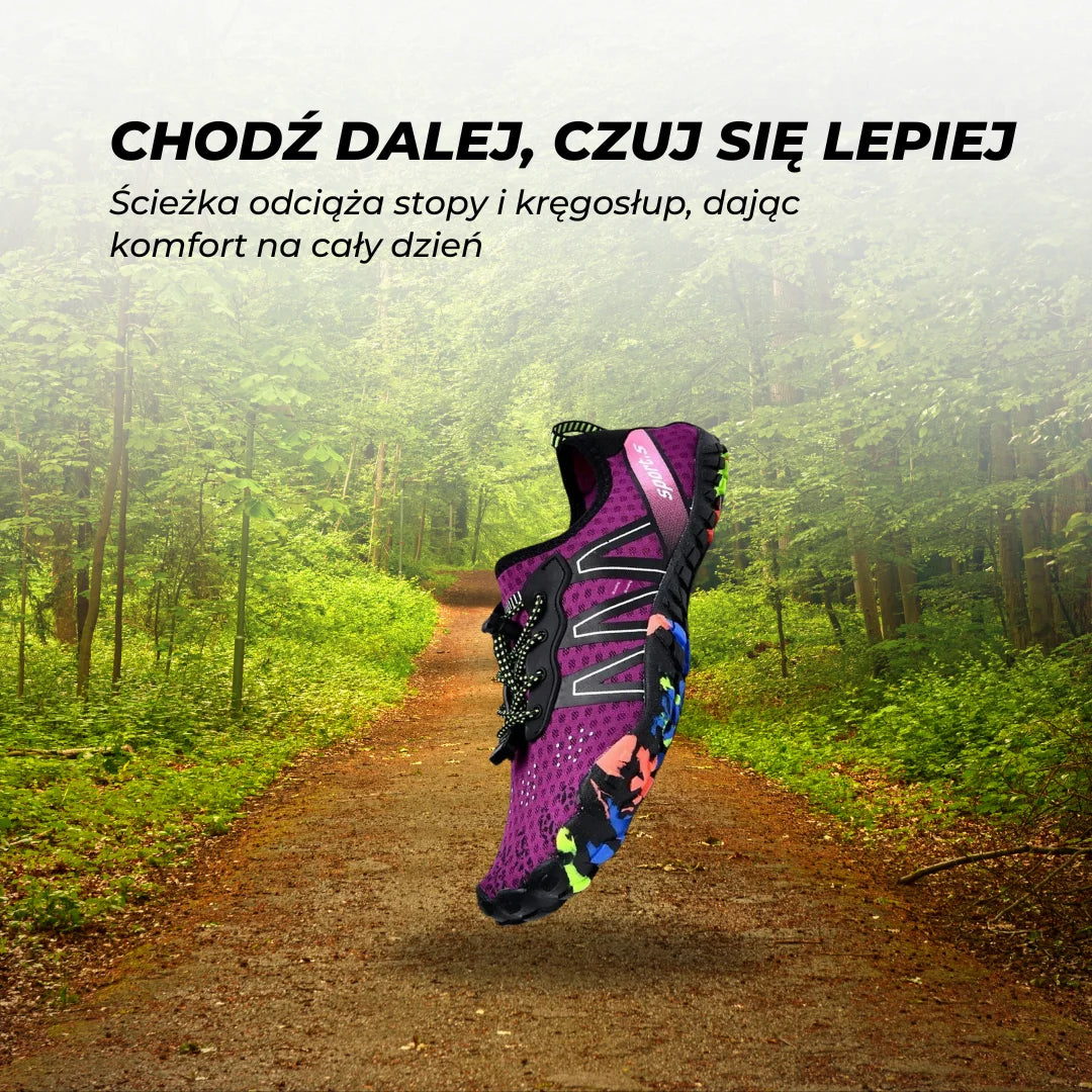 Dzięki podeszwie typu zero-drop nasze buty do chodzenia boso przywracają naturalne ułożenie stopy, zmniejszając nacisk na stawy, dzięki czemu chodzenie jest płynniejsze i mniej bolesne.