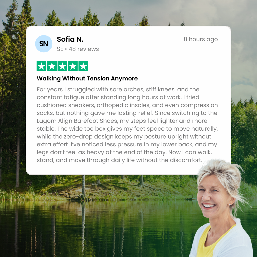 Vissa upplever en lättare, mer "barfotad" känsla. Det är normalt – det betyder att dina fötter äntligen fungerar som avsett. Inom kort tid förvandlas denna känsla till komfort och frihet som vanliga skor inte kan matcha.