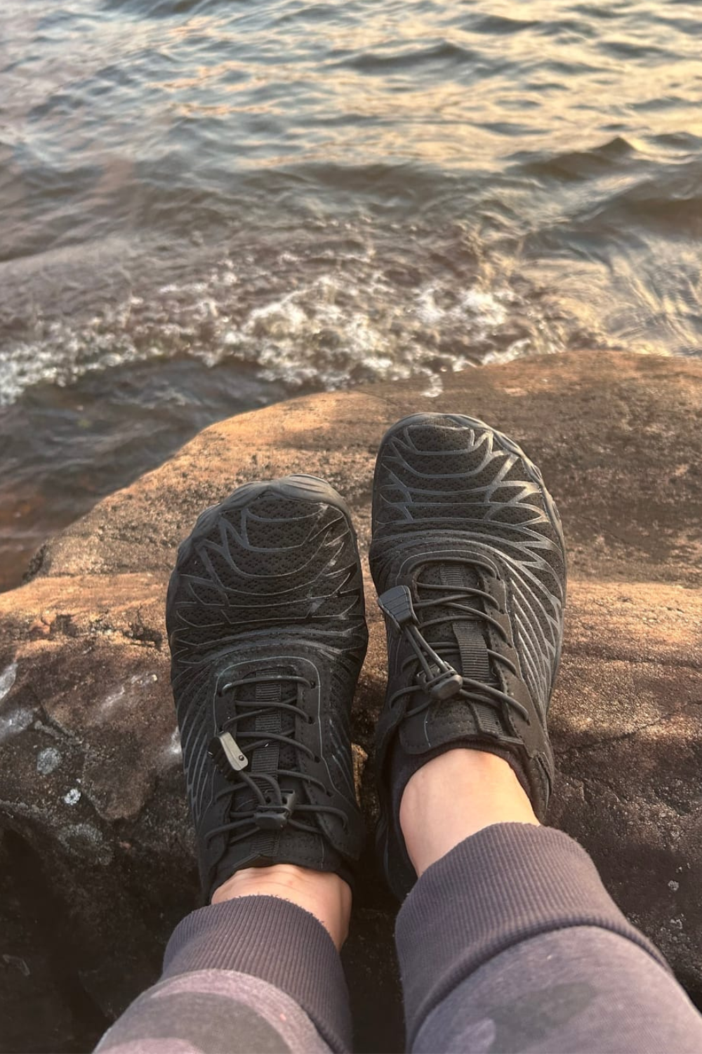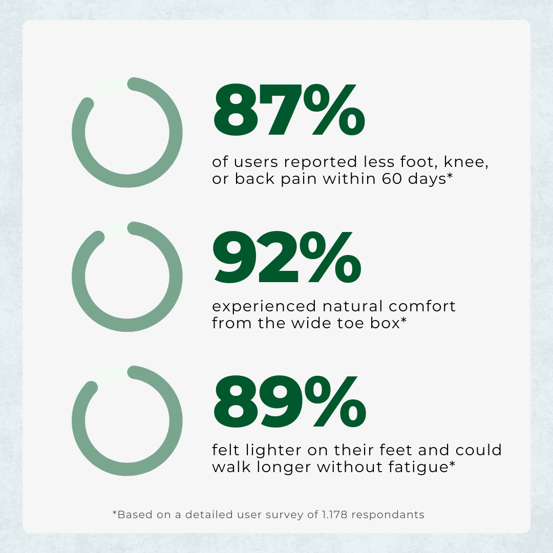 Vissa upplever en lättare, mer "barfotad" känsla. Det är normalt – det betyder att dina fötter äntligen fungerar som avsett. Inom kort tid förvandlas denna känsla till komfort och frihet som vanliga skor inte kan matcha.