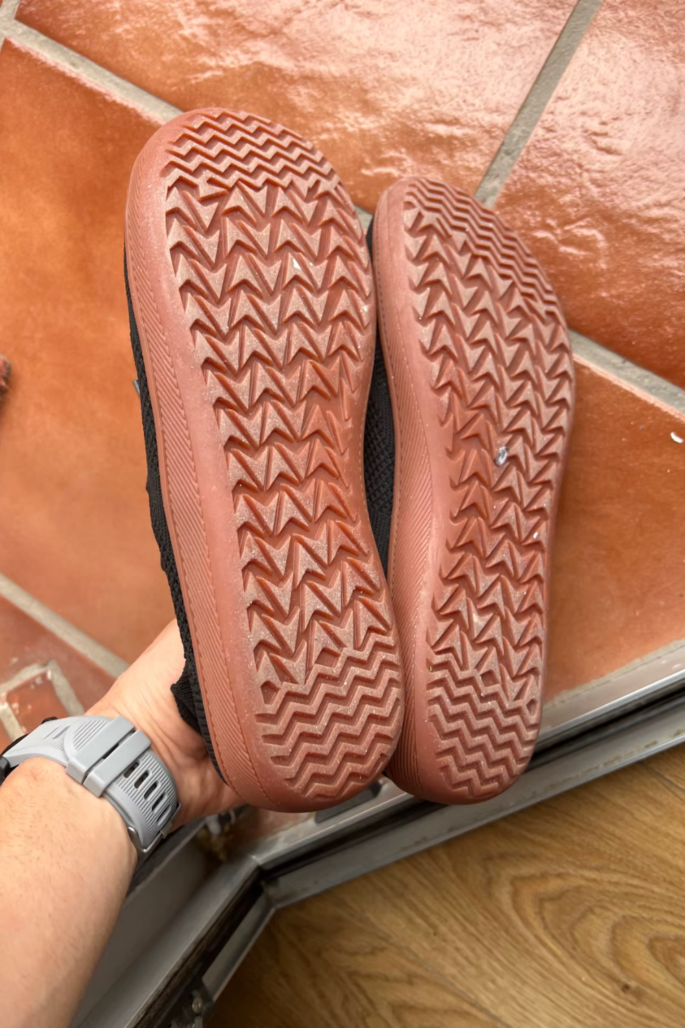 Den tunna sulan har ett halkfritt mönster som ger bra grepp på vardagliga underlag. Du får både markkänslan av att gå barfota och säkerheten hos en bra sneaker.