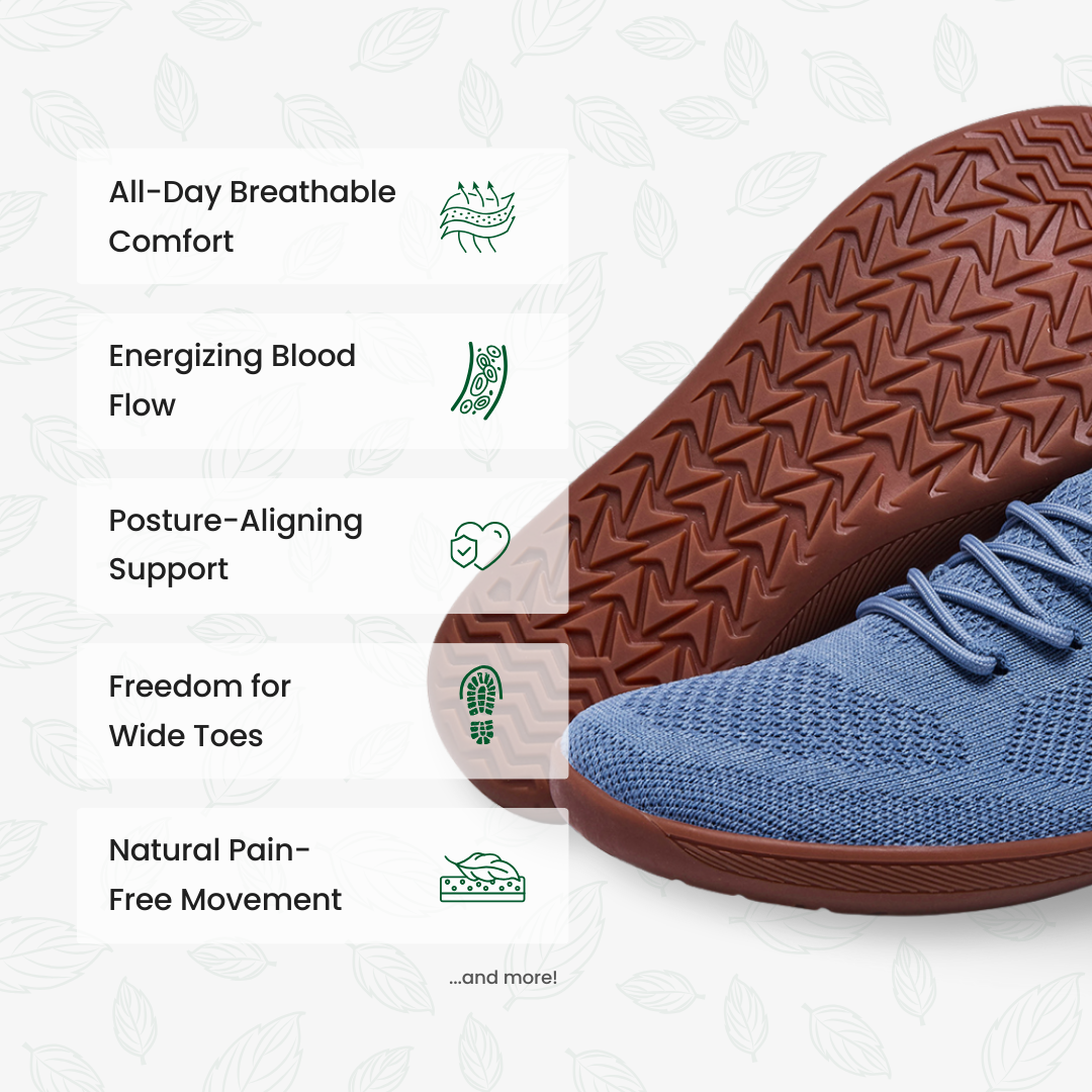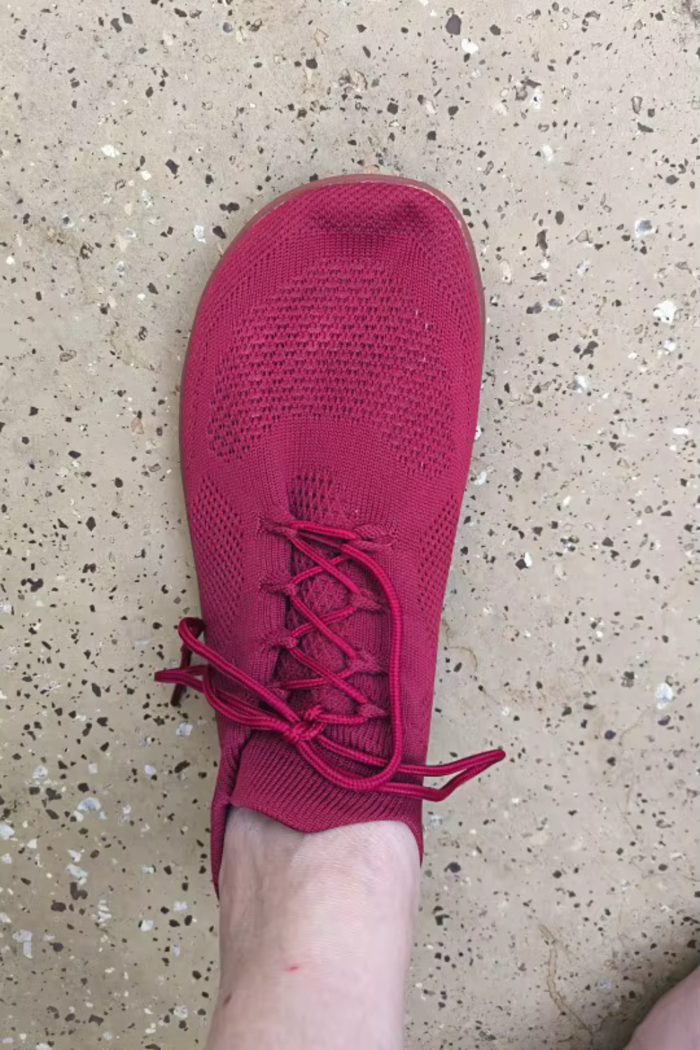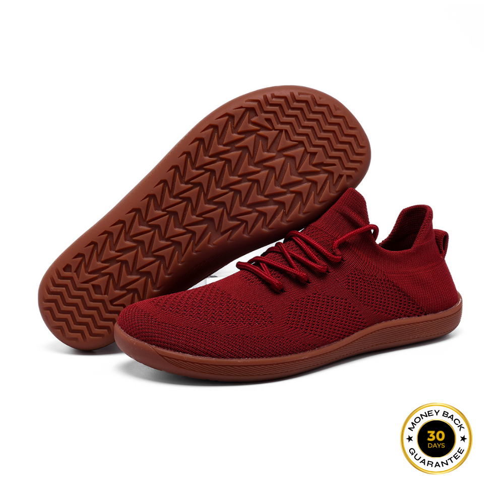 Våra barfotaskor har en bred tåbox som håller tårna i linje och lindrar trycket på lederna, vilket hjälper dina fötter att återgå till sin naturliga position så att gången känns lättare och smärtfri.