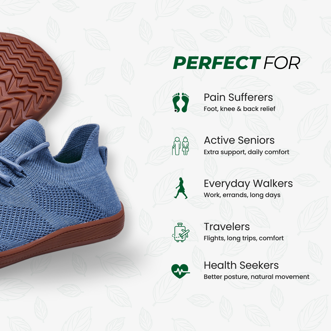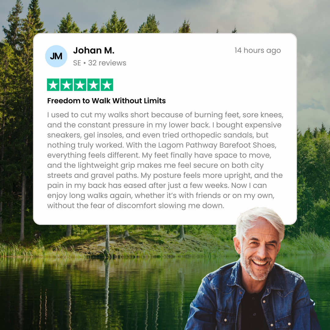 I åratal har obekväma skor gjort att människor känner sig trötta, ömma och begränsade . Många har slutat med aktiviteter de en gång älskade. Vår barfotadesign tar bort dessa hinder genom att återställa naturlig balans och hållning , så att du kan leva fullt ut igen istället för att planera din dag kring smärta.