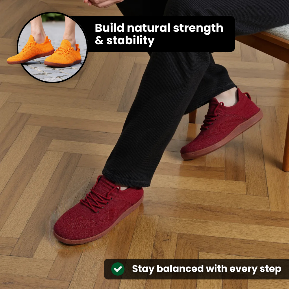Våra barfotaskor väcker de stabiliserande musklerna och hjälper till att återuppbygga starkare fotvalv, så att dina fötter känns stödda och piggare hela dagen.