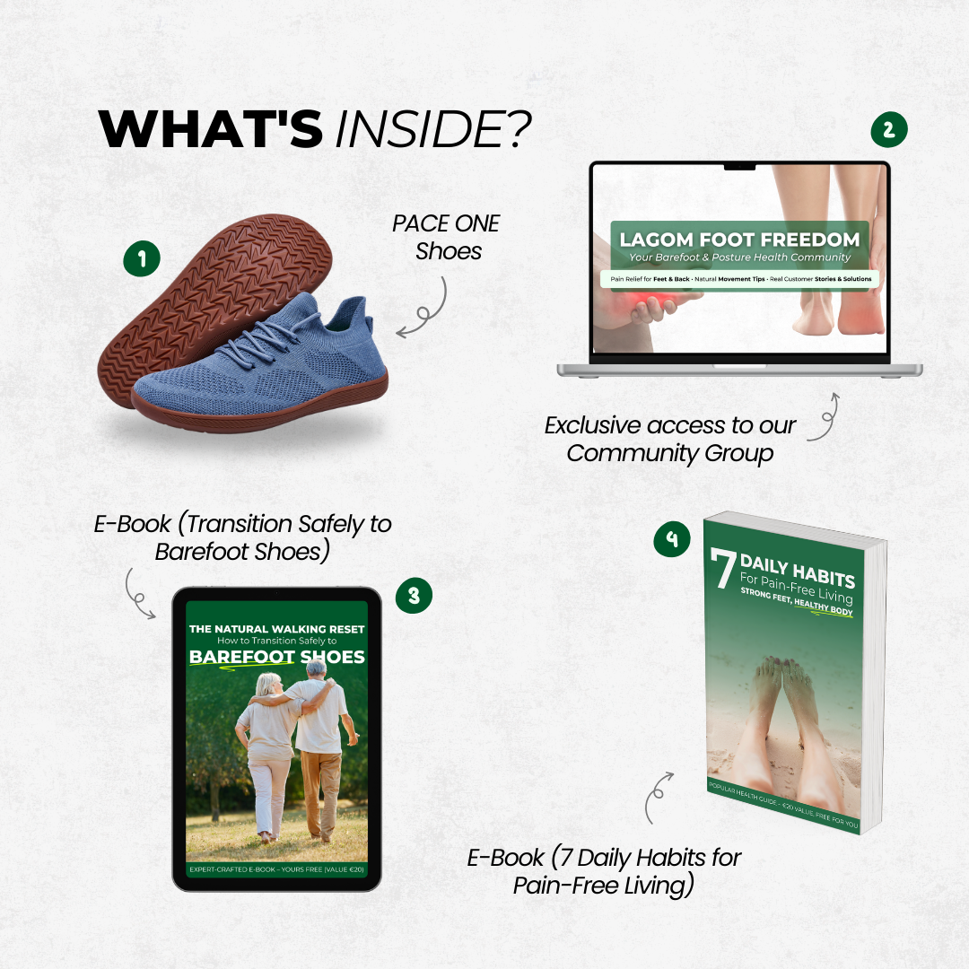 👉 Det här är inte bara ett par skor – det är en komplett lösning för hälsosammare rörelser och långsiktig komfort. Allt du behöver för att börja gå naturligt, leva smärtfritt och känna dig självsäker igen – allt i ett paket.